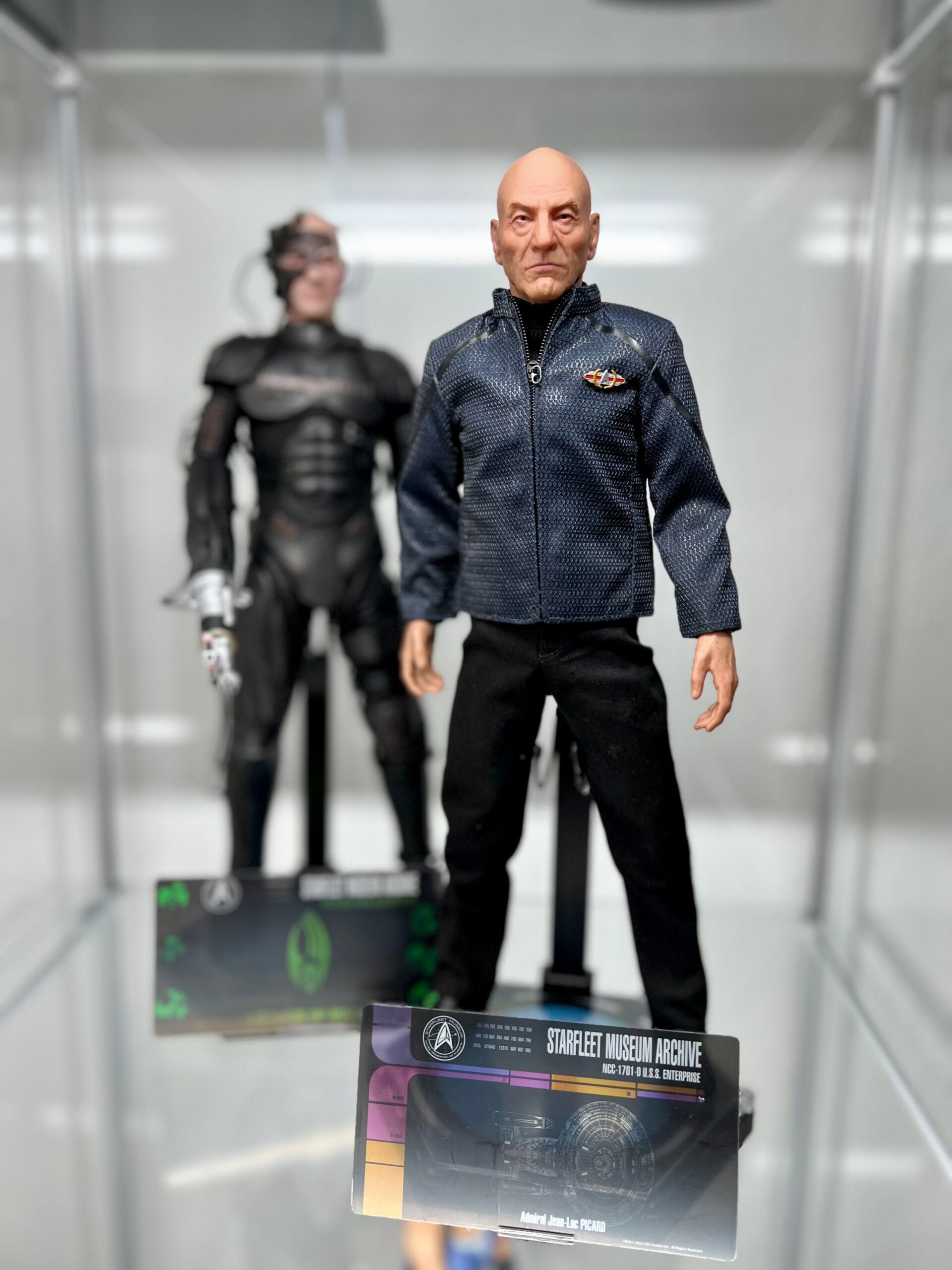 Meine Sammelleidenschaft für die sogenannten Sixth-Scale-Figuren ist erst im jüngst abgelaufenen Jahr so richtig in Fahrt gekommen. Bevor ich in die Thematik eingestiegen bin, habe ich lange Zeit immer wieder viele Stunden auf den verschiedensten Shop-Seiten für solche Figuren verbracht, lange hin und her überlegt, ob so viel Geld (der durchschnittliche Preis dürfte wohl eher bei 250 bis 300 Euro liegen) wirklich gerechtfertigt ist. Im Prinzip kann diese Frage nur jeder für sich beantworten, in meinem Fall ist es ein aus voller Inbrunst hinausgeschleudertes Ja! Und im Laufe dieser, ich nenne es mal „Sixth-Scale-Reise“, sind diverse Figuren bei mir eingezogen, von Marvel über DC bis zu verschiedensten Figuren aus Sci-Fi-Klassikern wie Blade Runner oder Equilibrium. Und irgendwann zog mit Locutus auch die erste Figur von EXO-6 bei mir ein. In meiner entsprechenden Review könnt Ihr noch einmal detailliert nachlesen, wieso und weshalb mich diese Figur sehr überzeugt hat und sie in meiner persönlichen Lieblingsliste beinahe auf Platz 1 gelandet wäre, noch vor dem überragenden Joker von InArts. Und ich hatte schon so die Vermutung damals, als Locutus hier ankam, dass ich mit dem Erwerb meiner ersten Star Trek-Figur in dieser Größe in einen Kaninchenbau falle, aus dem ich vermutlich so schnell nicht mehr herauskomme. Ich meine, Admiral Picard ist hier, Data aus The Next Generation steht auf der Wunschliste, Captain Pike ist vorbestellt und so weiter. Ihr erkennt da doch auch ein Muster, oder?