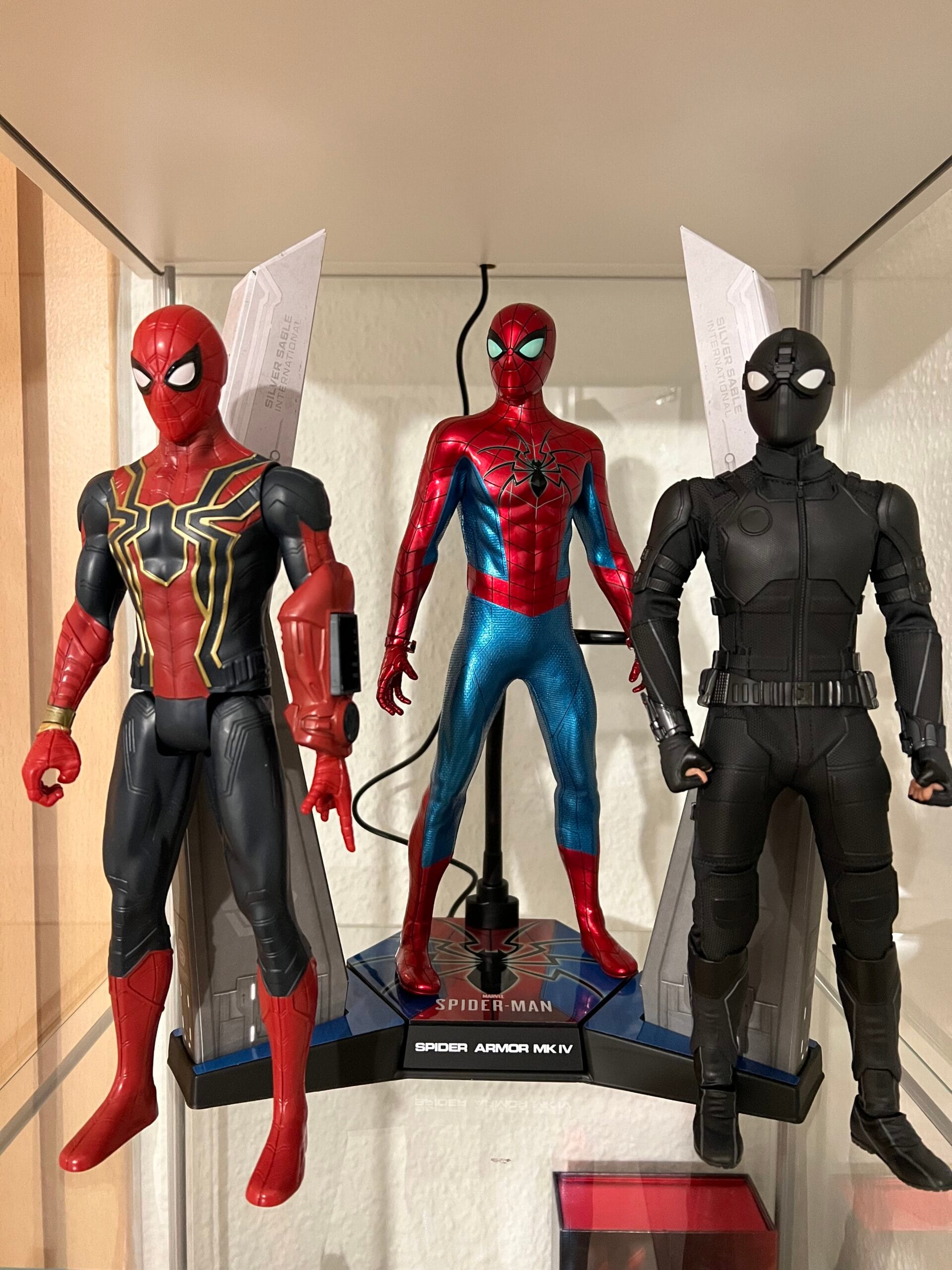 Wie gesagt, ich kam spät dazu. Genau genommen wurde mein Interesse an Figuren aus dem Hause Hot Toys bzw. in dieser Größe erst im vergangenen Jahr geweckt. Actionfiguren gesammelt habe ich eigentlich schon immer. Zuletzt waren es Star-Wars-Figuren aus der The Black Series-Reihe von Hasbro. Die sind deutlich kleiner – und wenn man nicht gerade vergriffenen Exemplaren bei eBay oder auf irgendwelchen Börsen nachjagt, auch sehr viel günstiger. Nicht zuletzt aufgrund der Größe, aber auch Welten von dem entfernt, was im 1:6er-Bereich abgeliefert wird. Ich war bestimmt auf der Suche nach einer weiteren Star-Wars-Figur, als ich auf meine erste Hot-Toys-Figur aufmerksam wurde: Spider-Man: Spider Armor MK IV, basierend auf dem Videospiel Marvel’s Spider-Man von Insomniac Games, erschienen für Sonys Playstation (und kürzlich auch für den PC). Und auch wenn mich der Preis von 299 Euro erst abgeschreckt hat – die Produktfotos haben diesen Haben-wollen-Reflex irgendwann so stark werden lassen, dass ich nach Wochen des Browser-Fenster-Refreshings, Stöberns in einschlägigen Gruppen bei Facebook usw. letztlich doch auf Bestellen geklickt habe.