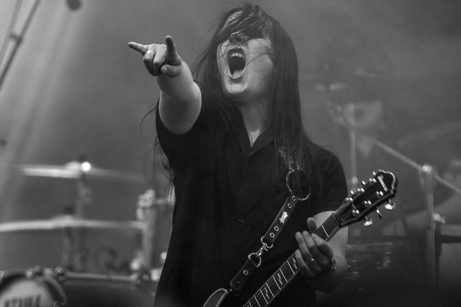 Dieser kam erst beim zweiten Song auf die Bühne. Auch komplett in Schwarz, auch mit Sonnenbrille. Das ganze Gehabe, der komplette in puncto Action sehr fein dosierte Auftritt war so dermaßen cool, dass sich schnell das Gefühl einstellte, es würde in Kürze hinter dem Trio zu schneien anfangen. Der mächtige, drückend düstere Gothic Rock, den die Truppe hier ablieferte, besorgte den Rest. Hat mir sehr gut gefallen, dieser Auftritt hier, und war nicht nur für mich eine der großen Überraschungen dieses Festivals. Merciful Nuns? Gerne wieder. Und falls es Euch so geht wie mir: Nehmt sie mal mit auf den Schirm, wenn Ihr Euch für Düsterrock begeistern könnt. Lohnt sich.