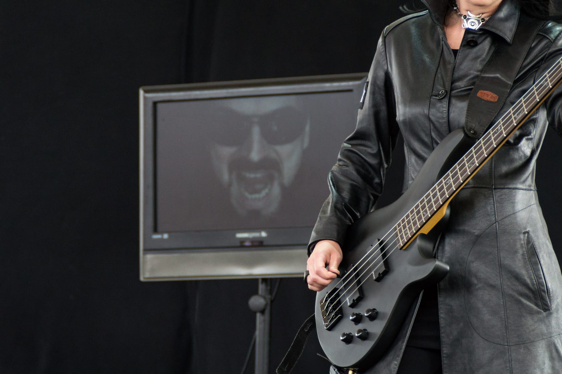 Dass sich Dennis Ostermann gerne mit schönen Frauen umgibt, ist ja offensichtlich. Gerade Haydee Sparks an der E-Gitarre (und später mit Flügelsfächern) und vor allem Nina de Lianin waren die definitiven Blickfänge des Festivals. Ab dem Moment, ab dem Nina auch auf die Bühne kam, um beispielsweise Morpheus vom aktuellen Album Utopia zu intonieren, schlugen zumindest direkt vor der Bühne etliche Herzen höher. Nina verdrehte in ihrem Latexdress wohl nicht nur mir und meinen Begleitern den Kopf. Ich würde einen Kasten Bier darauf verwetten, dass sie zu den meistfotografierten Motiven dieses Festivals gehörte. Da machte es auch nicht ganz so viel, dass bei der Show, die einen guten Überblick über das bisherige Schaffen bot, der Sound auf den Rängen nur noch verwaschen ankam. Soweit jedenfalls die Überlieferung, direkt vor der Bühne empfanden wir das als ganz angenehm. Fauxpas am Rande: Wir sind uns sicher, Nina wollte etwas Nettes sagen, als sie den Gästen erklärte, sie seien die schwarze Sonne für ISC. Ihr könnt Euch vorstellen, dass das für verblüffte Gesichter sorgte. Auch bei Twitter wurde das munter diskutiert. Kann halt im Eifer des Gefechts mal passieren. Unterm Strich: ein gelungenes Blackfield-Debüt, auch euch würden wir uns in Gelsenkirchen gerne wieder anschauen.