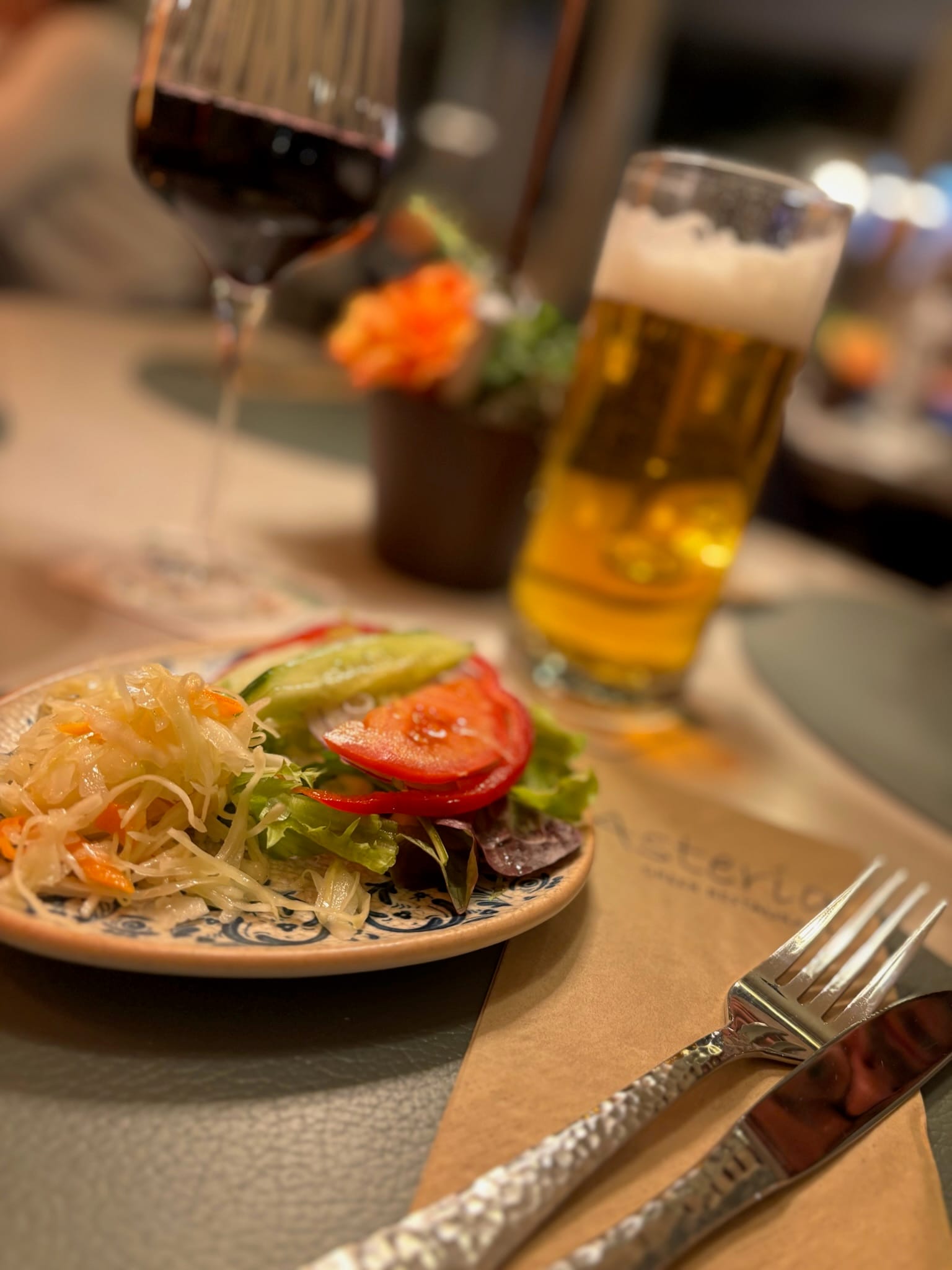 Wenn man aber um die Stände der Milchkuranstalt bzw. dem Hundertwasserhaus herumwankt, dann ist das Astería nur noch einen Katzensprung entfernt und somit eine Option, wenn sich ein leichtes Hüngerchen bemerkbar macht. Wir waren zuvor in den Sommermonaten hier, hatten gute Erfahrungen gemacht und beschlossen, den ersten Eindruck von anno dazumal tieferzulegen und die Erfahrungen in einen neuerlichen Artikel zu packen. Angenehm und nützlich wieder formvollendet kombiniert, quasi.