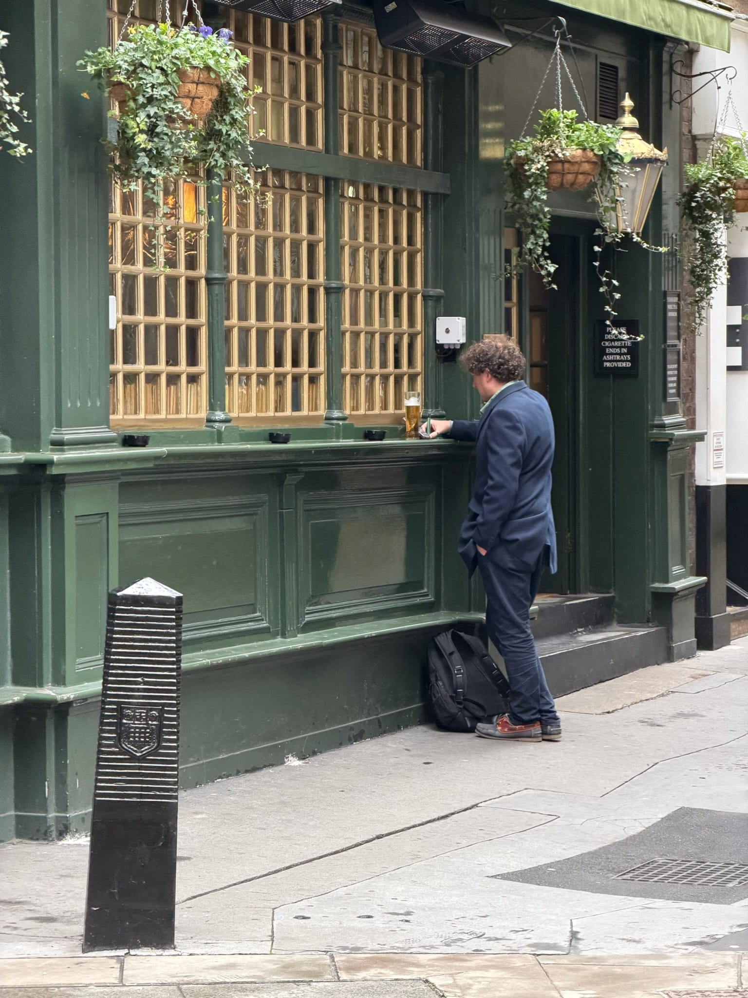 Das Wetter, das uns bei der Landung begrüßte, sollte sich im Prinzip die ganze Zeit über halten: Regen, kein Regen, Regen, kein Regen und so weiter – wechselnd mitunter im Minutentakt. Die Londoner, das stellten wir irgendwann fest, hatten es offenbar längst aufgegeben, sich mit so profanen Dingen wie einem Regenschirm abzugeben. Der Regen kommt, der Regen geht. Die Fahrt in die Stadt rein war genauso flauschig wie der Flug – mit der Ausnahme, dass es auf unserem reservierten Premiumplatz mit Blick vorne raus zog wie Hechtsuppe. Der Fahrer des Vehikels hatte das Fenster offen und machte auch keine Anstalten, an diesem Zustand etwas zu ändern. Also verzogen wir uns beim nächsten Halt ganz nach hinten. Immerhin konnten wir so ungestört ein weiteres Döschen konsumieren. Habe ich schon erwähnt, dass dieser Gin Tonic, den man in den W & S‑Stores bekommen kann, echt Schmackofatz ist? Nee? Habe ich hiermit nachgeholt.