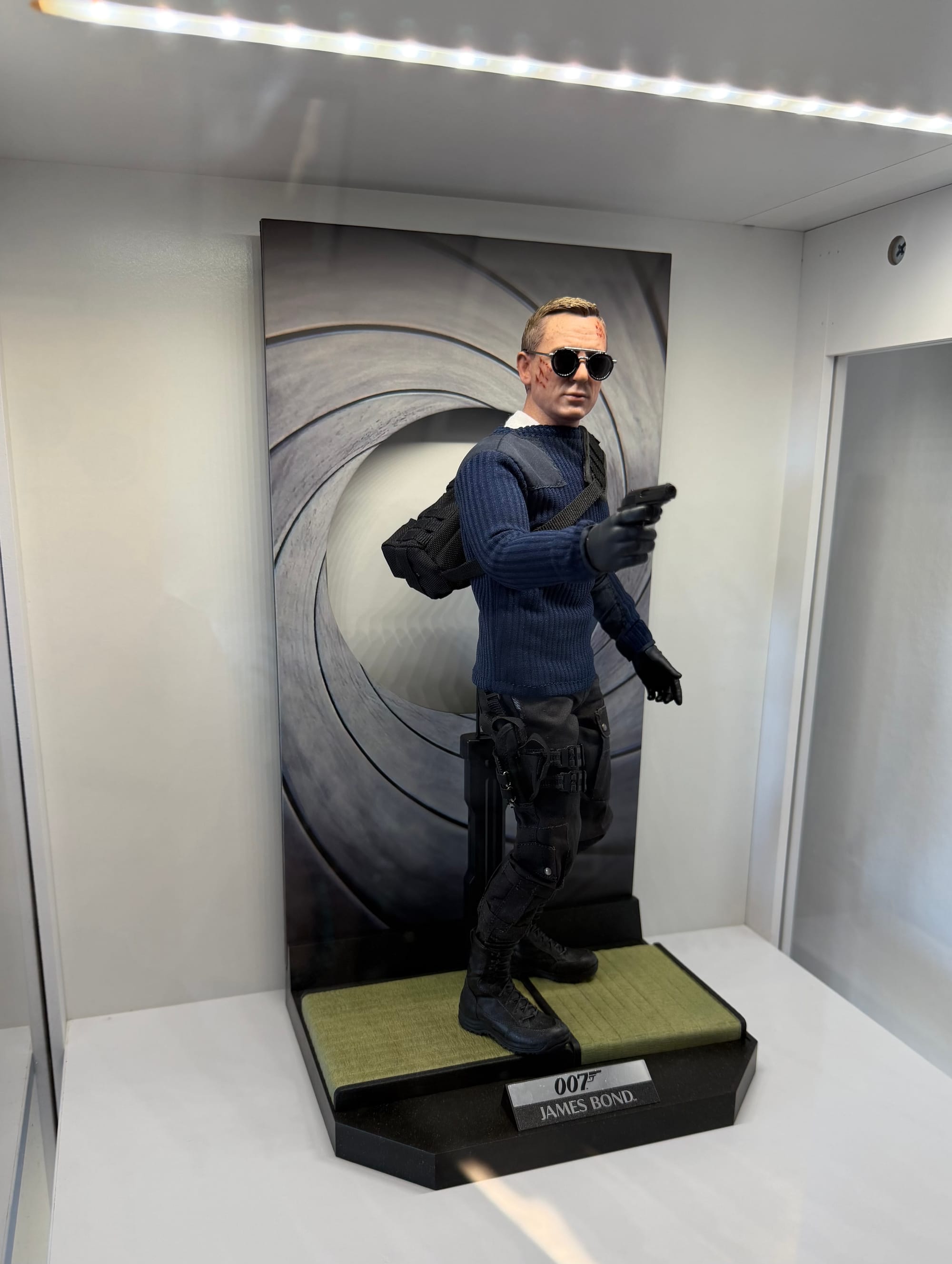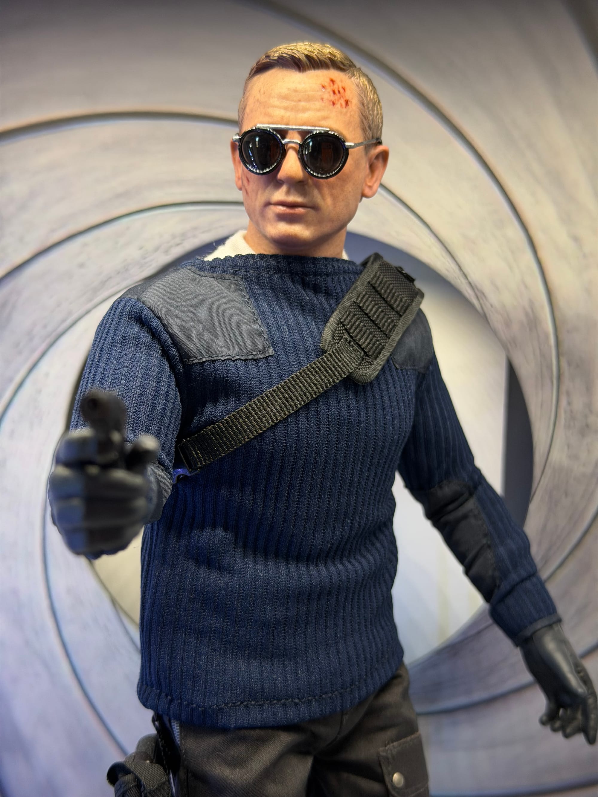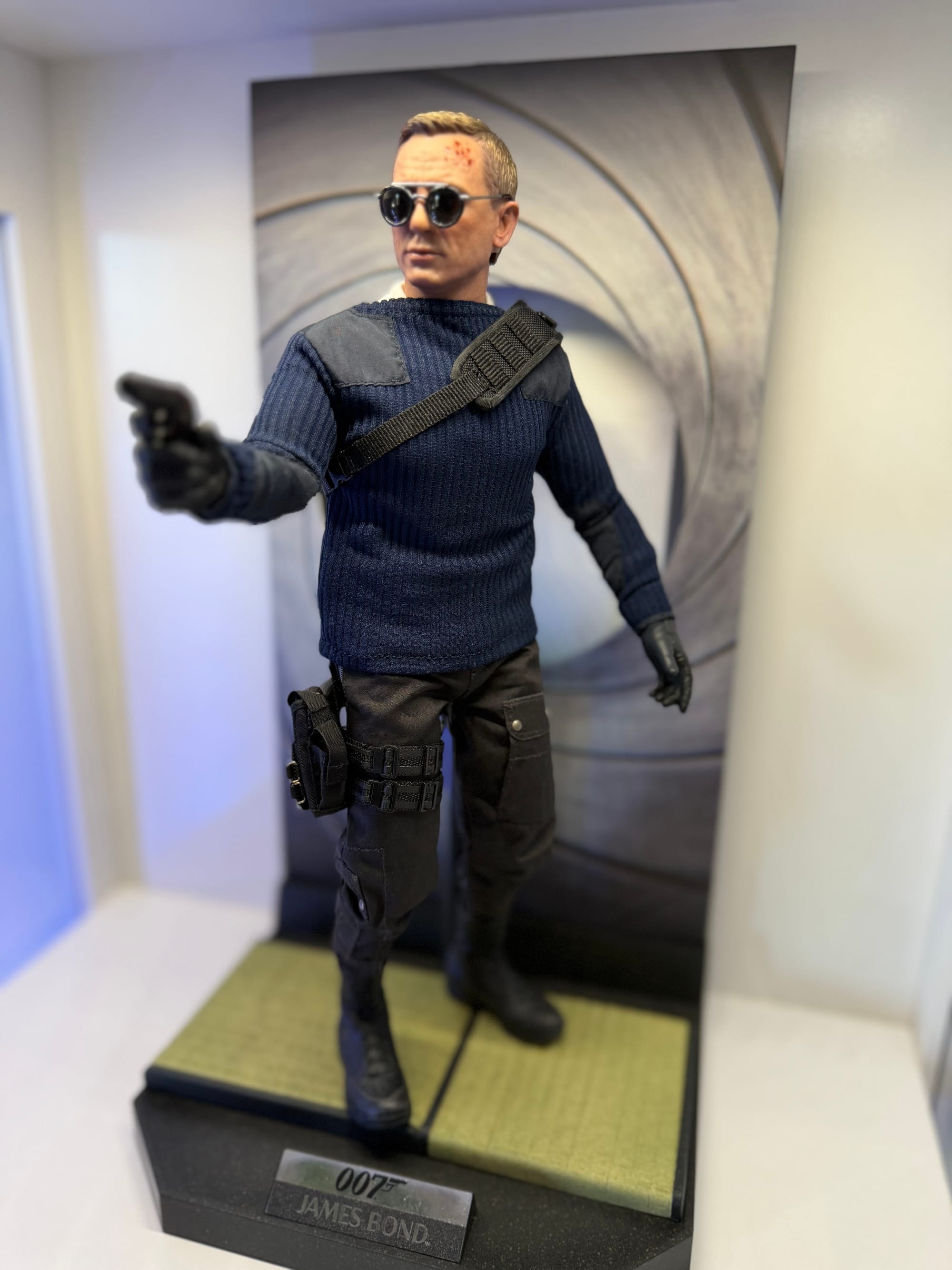 Zur Figur: Mr. Bond hat sich spontan und direkt zu einer meiner neuen Lieblingsfiguren gemausert! Hier hat Hot Toys meines Erachtens richtig geliefert. Die Klamotten, das Zubehör inklusive des Displays in Form des ikonischen Pistolenlaufs, der Head… Passt für mich. Aber so richtig! Ich freue mich schon auf den regulären Bond von Hot Toys. Und den werde ich dann (wieder) in aller gebotenen Ausführlichkeit vorstellen. Gerade denke ich auf einer Review im Videoformat herum. Ich lasse die Idee mal noch ein bisschen reifen.