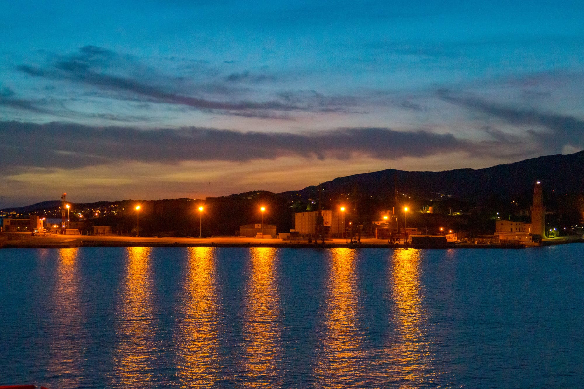 Im malerischen Sonnenuntergang schob sich die Mein Schiff 4 durch das ruhige Gewässer, um dann, gegen 22 Uhr, im Hafen von Arrecife längsseits zugehen, wie Kapitän Troier immer zu sagen pflegte. Als das passierte, war die Nacht bereits hereingebrochen. Somit war an einen Blick auf die Insel vom Balkon oder vom Pooldeck aus nicht zu denken. Viel mehr als ein paar orange leuchtende Lichter waren nicht zu sehen. Oh, und dann war da noch dieses nervtötende Baggerschiff, das scheinbar schon zur Nachtschicht angefahren war.