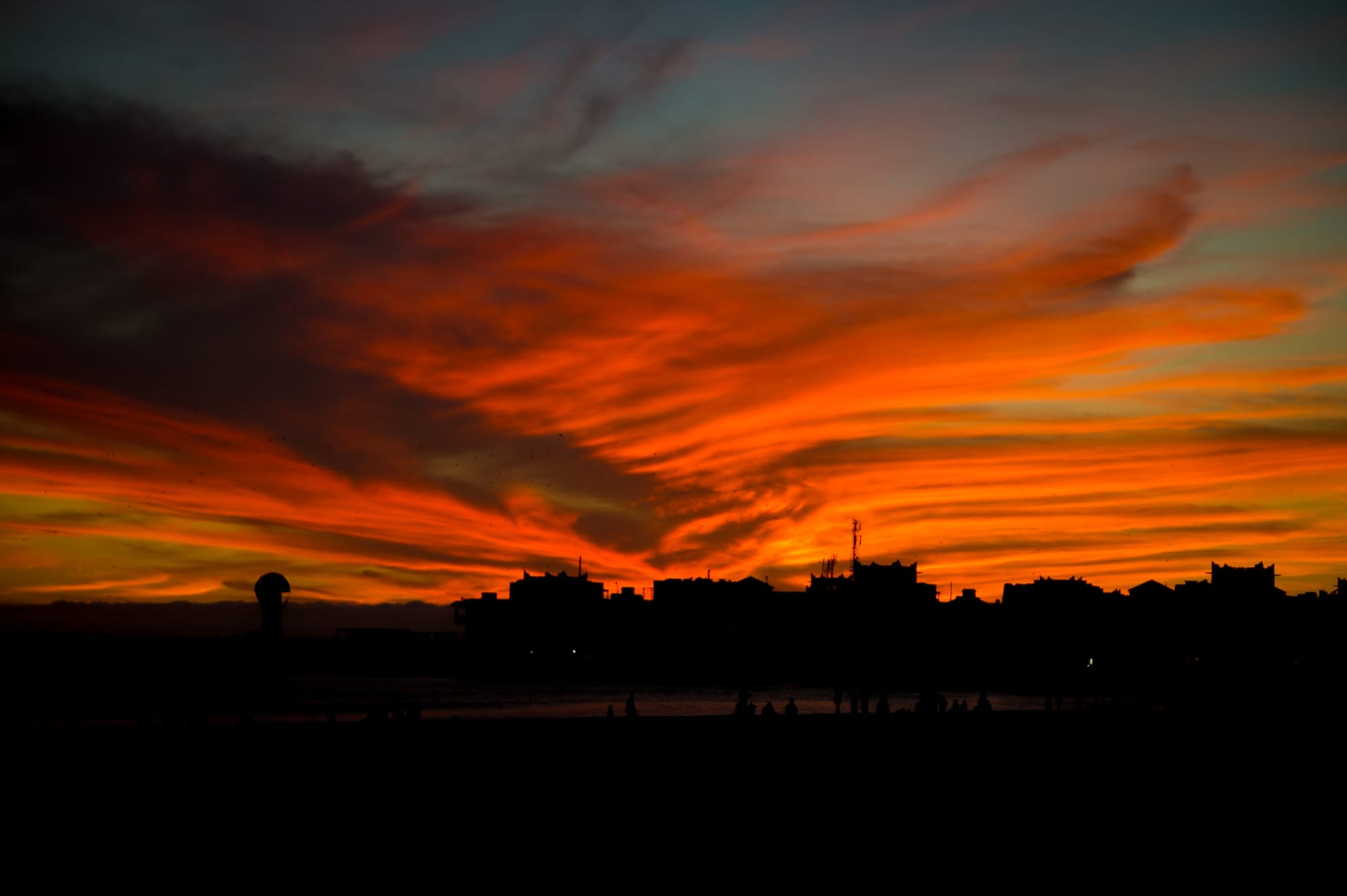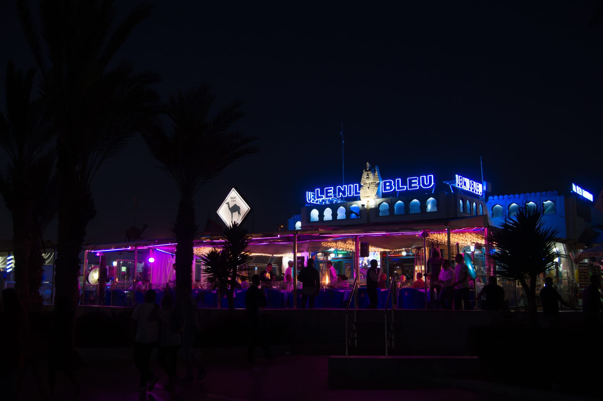 Wir fühlten uns auf dieser von Menschen übersäten Straße ein wenig wie auf einem Straßenfest. Die zahlreichen Cafés und Restaurants waren oft bis auf den letzten Platz besetzt. Vielleicht lag es daran, dass wir an einem Samstagabend über die Promenade flanierten, vielleicht auch einfach daran, dass am Strand vor der Kasbah an diesem Abend ein Musikfestival veranstaltet wurde. Die Inhalte der Musik verstanden wir nicht, das Gewummer der Bässe, die uns noch knapp einen Kilometer entfernt ganz angenehm das Trommelfell massierten, hingegen schon. Etwa eine Stunde Zeit hatten wir, um die Promenade auf eigene Faust zu erkunden. Was wir auch taten. Der Sonnenuntergang, der sich nahe der Kasbah bot, war vielleicht schon ein bisschen zu angeberisch, ansonsten aber ganz sensationell! Geschwind war der Tag der Nacht gewichen und Leuchtreklamen und Neonlichter bestimmten das Bild. Etwas unwirklich wirkte das alles schon. Die Zahl der Passanten, die jetzt durch die hereingebrochene Nacht huschten, schien eher noch zugenommen zu haben. Leider mussten wir irgendwann zum Bus zurück, geblieben wären wir definitiv gerne noch länger.