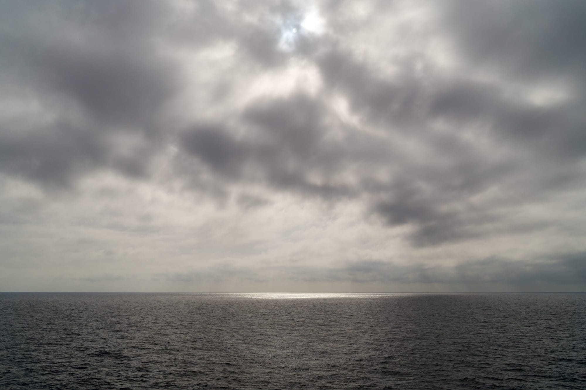 Zunächst schien es ein freundlicher, sonniger Tag zu werden, doch schon ganz bald wirkte es, als hätten Himmel und Horizont über sowie das Meer unter uns alle Farben verloren. Es regnete, war aber windstill, was angesichts des leichten Geschaukel irgendwie skurril zu beobachten war. Das Schiff hob und senkte sich sanft über die Dünung, Wellen tänzelten drumherum und der Regen fiel in geraden Strichen auf das Deck. Ein guter Tag, um mal ein bisschen in einem Buch zu lesen oder anderweitig die Seele einfach baumeln zu lassen und nichts zu tun. Es ist ja schließlich eine Urlaubsreise, nicht wahr?