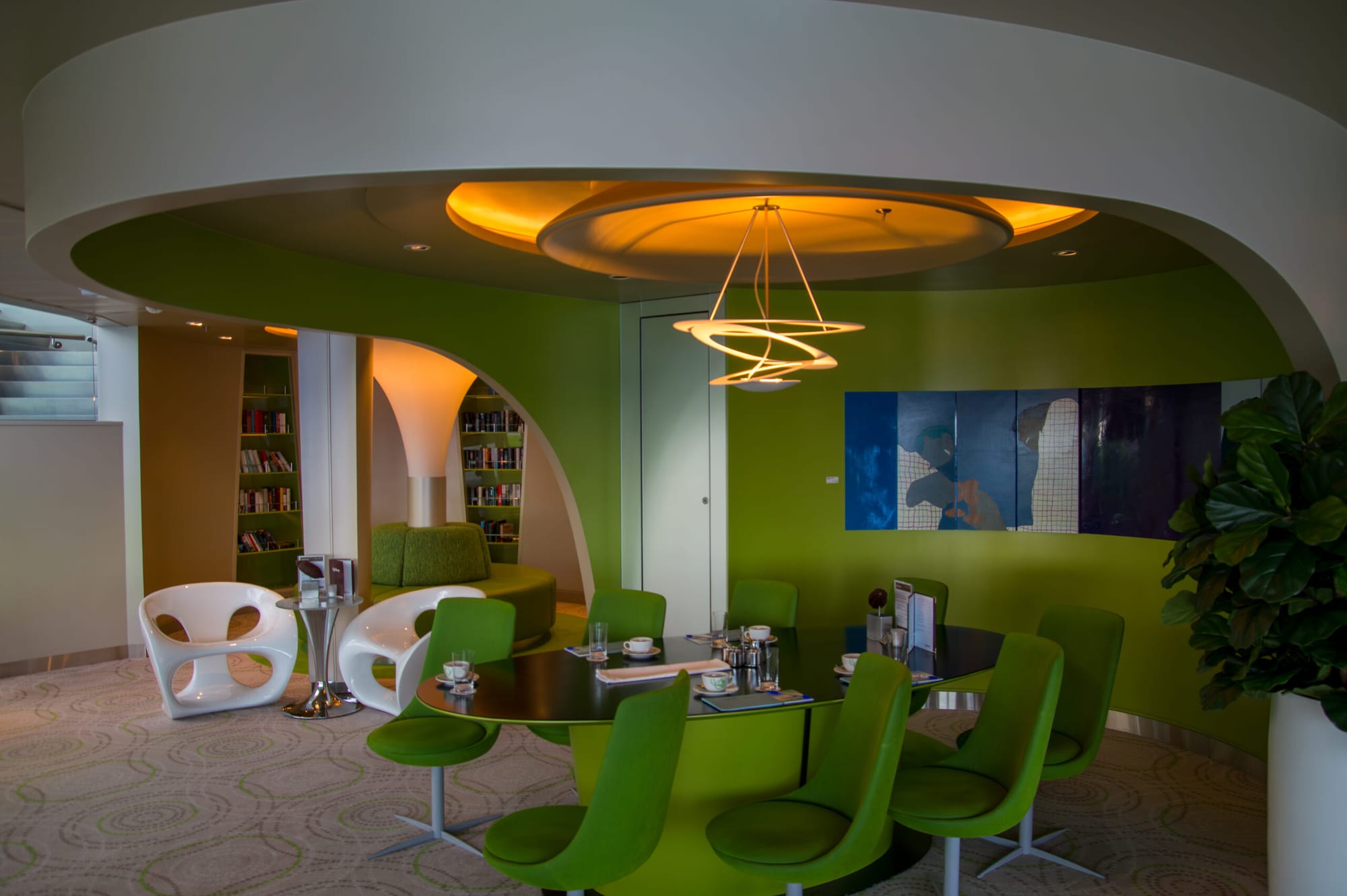 Was TUI Cruises geritten haben mag, die grundsätzlich sehr gemütliche Café-Lounge anstatt des fetzigen Retro-Oranges von der 3 in dieses hässliche Gravis-Grün umzupinseln, entzieht sich meinem Verständnis. Aber das ist ganz sicher Geschmackssache.