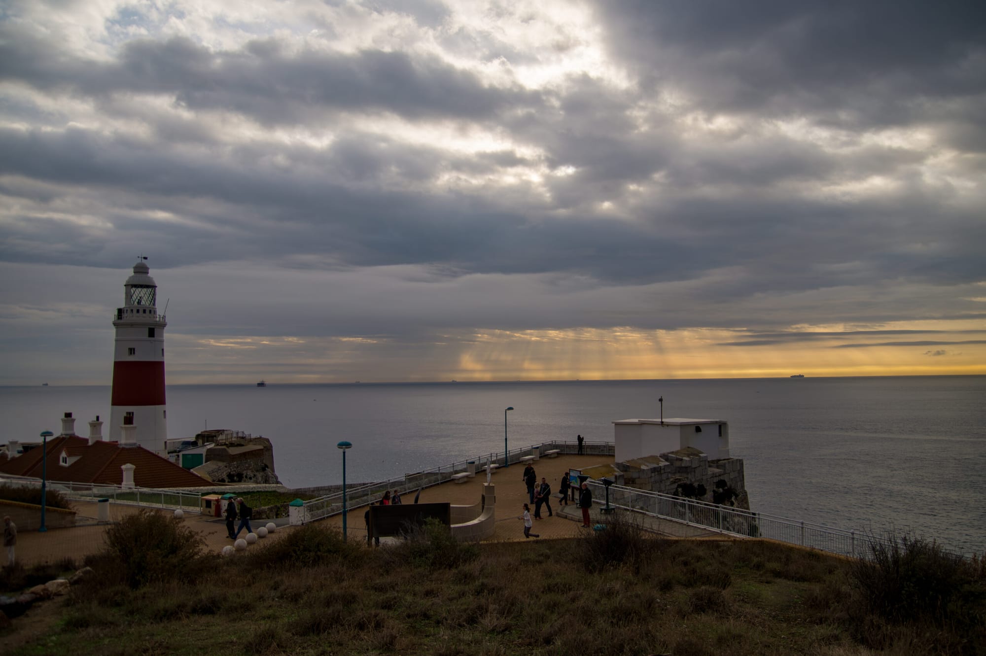 Unter grauem Himmel zuckelte das kleine Gefährt also vom Hafen aus los, vorbei am Flughafen und am spanischen Grenzposten zum Europapunkt. Der südlichste Punkt Europas, hier ist es zu Ende. Bisschen nervig bei dieser Tour: Der permanente Zeitdruck und das strikte Einhalten des Zeitrahmens. Sowohl unser Busfahrer, eigentlich ganz cool, da er die deutschen Info-Ansagen, die vom Band kamen, mit Lokalwissen in Englisch ergänzte, als auch der Typ, der uns später durch die WW2-Tunnel führte, hatten es so unglaublich eilig, dass der Spaßfaktor gewaltig drunter gelitten hatte.