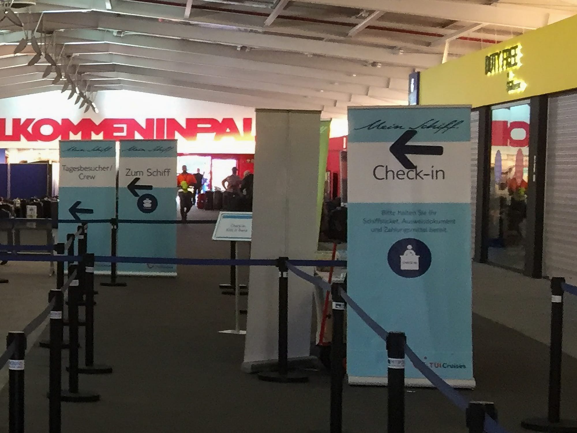 Wir betraten das Kreuzfahrtterminal, in dem schon geschäftiges Treiben herrschte. Einem langen Tresen einer gut besuchten Bar gleich checkten Crewleute die Neuankömmlinge ein. Kreuzfahrterfahrene wissen, was an dieser Stelle kommt: Ein freundliches Willkommen durch das jeweilige Besatzungsmitglied, die Klärung der Zahlungsmodalitäten, gefolgt vom Einlesen einer EC- bzw. Kreditkarte sowie das Anfertigen eines Fotos, damit man beim Betreten und Verlassen des Schiffes mit der Bordkarte, die gleichzeitig an Bord des Schiffes als alleiniges Zahlungsmittel dient, von der Sicherheit identifiziert werden kann. In unsicheren Zeiten wie diesen können die Sicherheitsvorkehrungen an Bord auch gar nicht hoch genug sein. Und warum wird eigentlich eine Geldkarte eingelesen? Ist da nicht alles Inklusive? Guter Einwand.