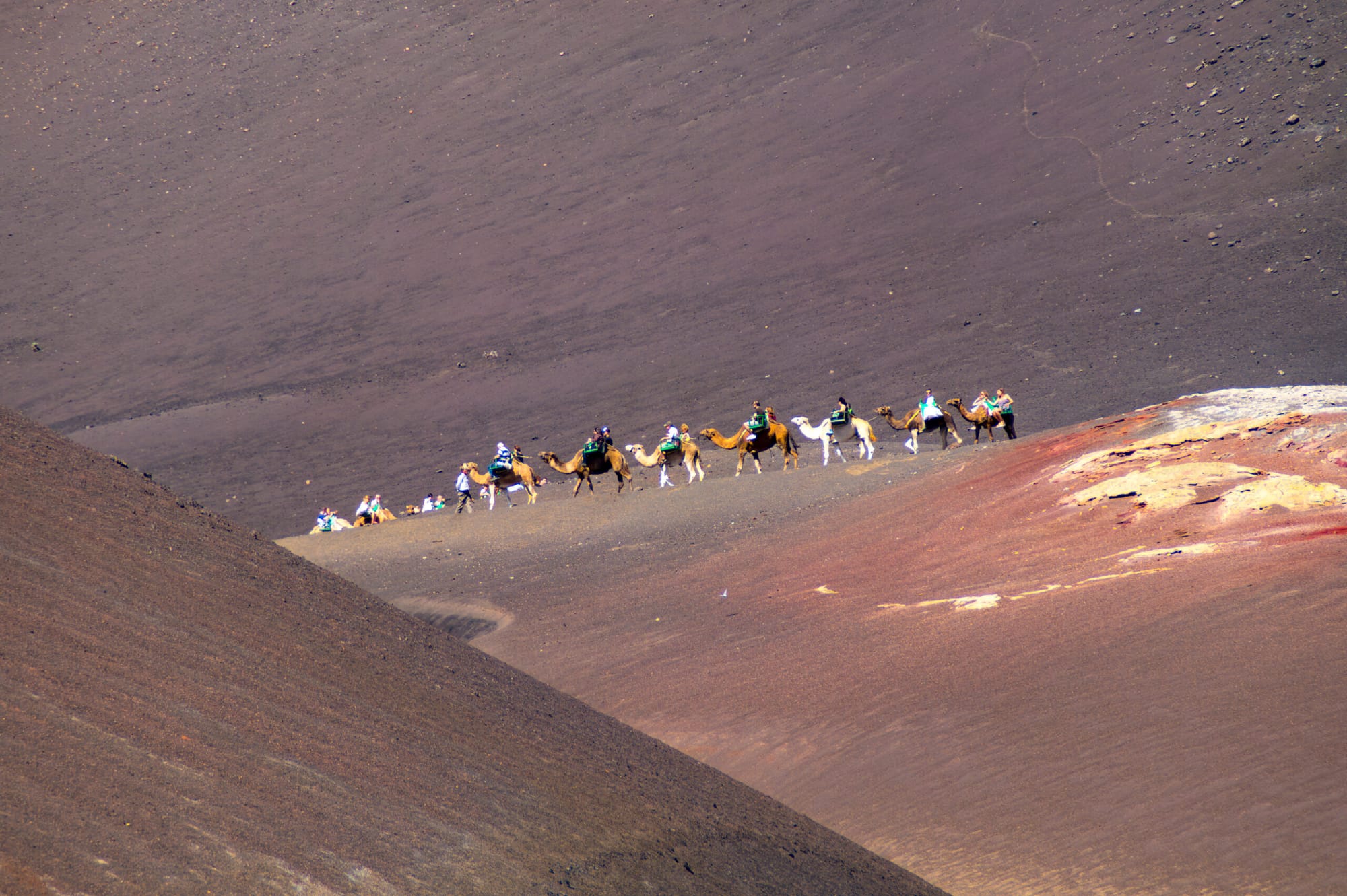 Was auch immer Ihr für Vorstellungen habt, die Euch beim Begriff Nationalpark durch den Kopp gehen: Lanzarote ist eine sehr karge Insel – überspitzt ausgedrückt eine Ansammlung aus Vulkanen und erloschenem Vulkangestein, ohne großartige Vegetation, dafür ein bisschen an Mordor erinnernd. Demnach fühlt man sich im Timanfaya Nationalpark auch eher wie auf einem anderen Planeten. Wenn da nicht diese Kamele gewesen wären, die direkt an der Bushaltestelle auf kamelbegeisterungsfähige Touristen warteten. So ein Glück, dass der Ritt mit diesen Viechern optional war. Wir verzichteten alle vier dankend und schnökerten lieber so etwas in der Gegend herum.