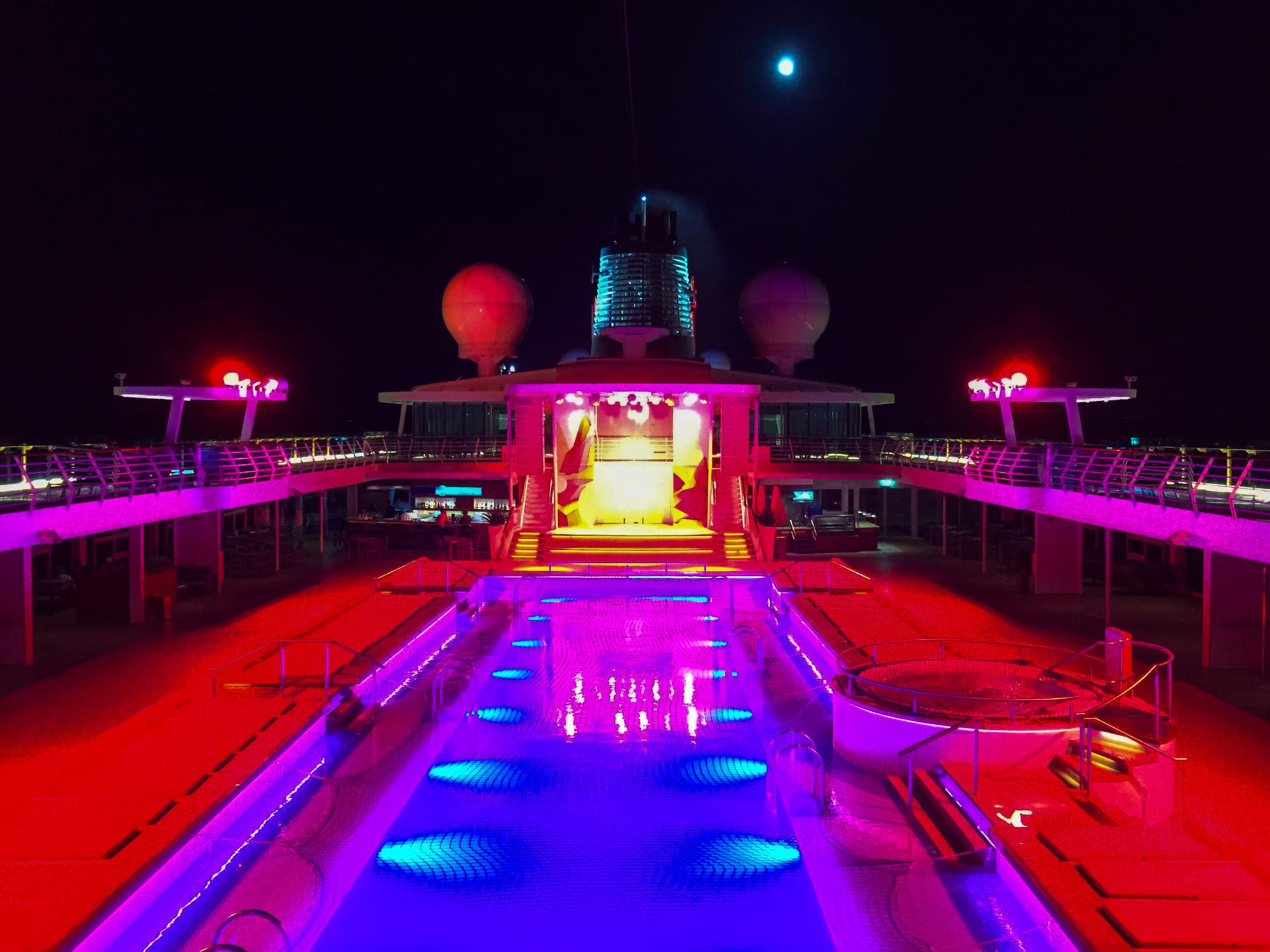 Direkt nach dem ersten Hafen folgte schon der zweite Seetag. Eigentlich ganz cool, weil Landgänge durchaus stressig sein können und man durch diese Zwangsentschleunigung die Gelegenheit bekommt, ein paar Gänge herunterzuschalten und sich tatsächlich mal dem Urlaub hinzugeben. Was wir auch taten.