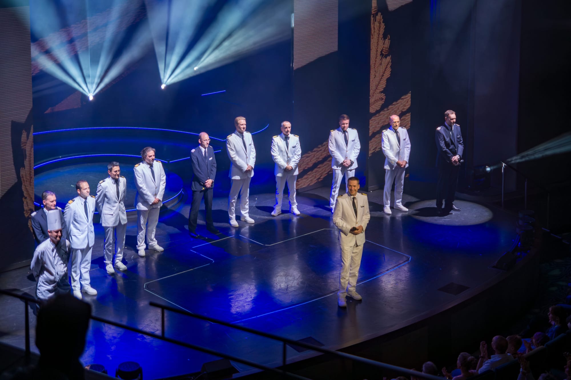 Fetzig ist übrigens auch immer wieder die Vorstellung der leitenden Offiziere, die stets am Abend des ersten Seetages im Theater stattfindet. Dort zogen wir nach dem Konzert im Klanghaus hin und wohnten der ziemlich witzigen Show bei, die Kapitän Jens Troier und seine Führungscrew dort veranstalteten. Ok, die machen da jetzt keinen riesigen Heckmeck, trotzdem sind die Sprüche und die Art und Weise, wie sich die Leute den Gästen gegenüber vorstellen, mitunter ganz witzig.