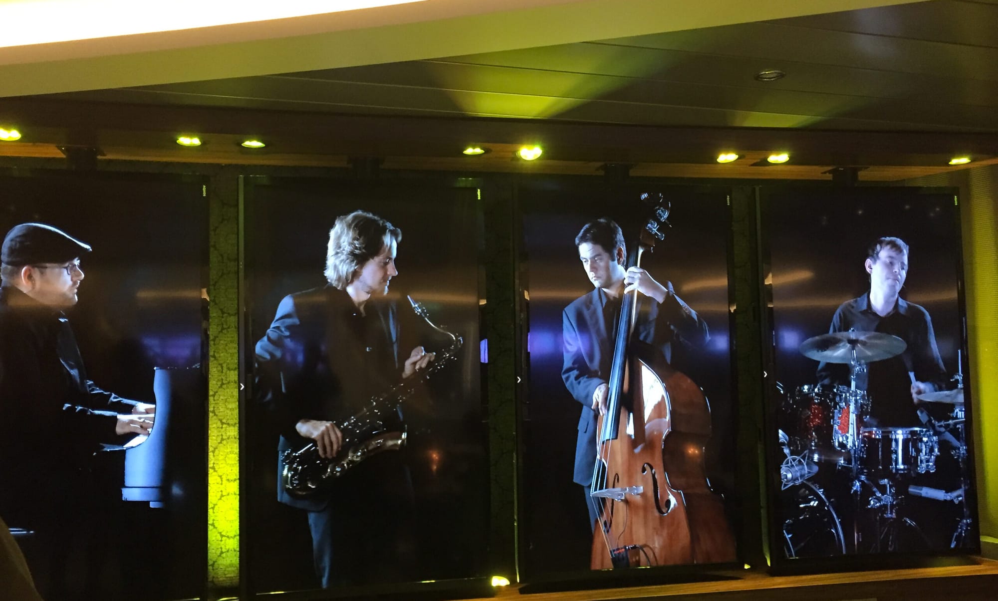 Viel Gutes hatten wir über diesen ganz besonderen Konzertsaal mit seiner ach so famosen Akustik gehört – es gab keinen Zweifel, dieses Mal mussten wir uns von dessen Qualitäten selbst überzeugen. Was wir auch taten. Wir statteten dem Humboldt-Streichquartett einen Besuch ab. Die beiden Damen und die beiden Herren spielten an diesem Abend ein paar ausgewählte Stücke klassischer Musik. Kein Wunder, Perlen der klassischen Musik waren ja auch das Thema. Über die Dauer von einer guten Dreiviertelstunde (inklusive einer kleinen Zugabe) erfüllten sie den Raum des Klanghauses mit ganz toller Streichmusik. Zwei Violinen, ein Cello, eine Bratsche – mehr brauchte es nicht, um das komplett besetzte Klanghaus mit Musik zu füllen. Was soll ich sagen – der Sound in dieser Bude ist tatsächlich so großartig, wie in der Werbung von TUI Cruises vollmundig versprochen.