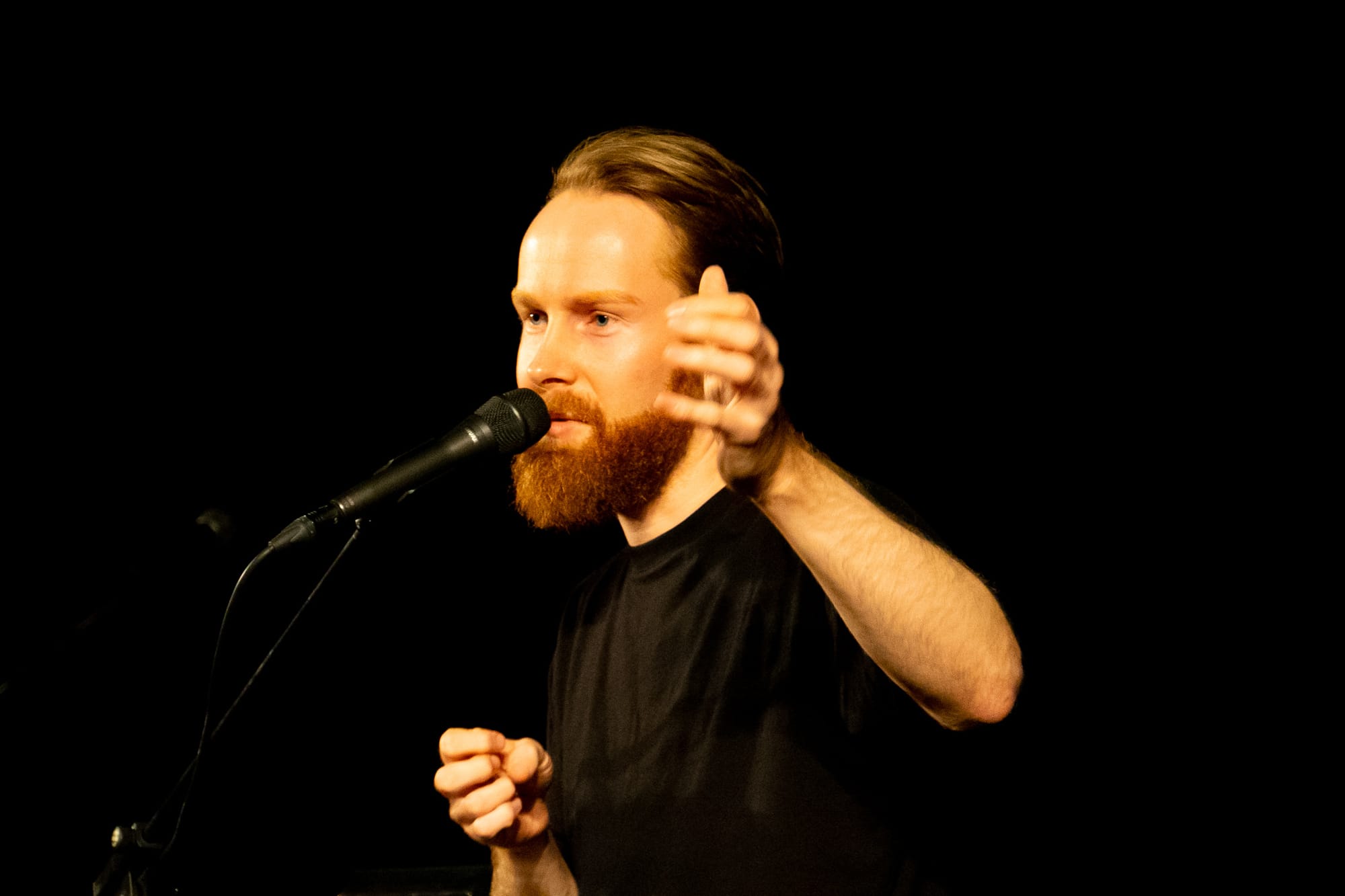 Punkt 20 Uhr gingen die Lichter auf der Bühne an und Enno begrüßte zunächst die anwesenden Gäste, um mit einer kurzen Anmoderation den Support-Künstler des Abends anzukündigen: Betterov, ein junger Mann, über den bisher zumindest mir nur wenig mehr bekannt ist, als dass er von Enno mit wärmsten Empfehlungen auf die Bühne geschickt wurde, im Theater groß geworden sein und die Wurzeln irgendwo in Thüringen haben soll. Eine erste Single namens Dynamit, die über die gängigen Portale erhältlich ist – that’s it. Vielleicht ist es manchmal gar nicht so schlecht, nicht mehr über Kunstschaffende zu wissen. Das hat nämlich dann den Vorteil, dass man sich nicht schon aufgrund irgendwelcher Infos ein Bild im Kopf malen kann, sondern wirklich nur das, was auf der Bühne passiert, unvoreingenommen auf sich wirken lässt.