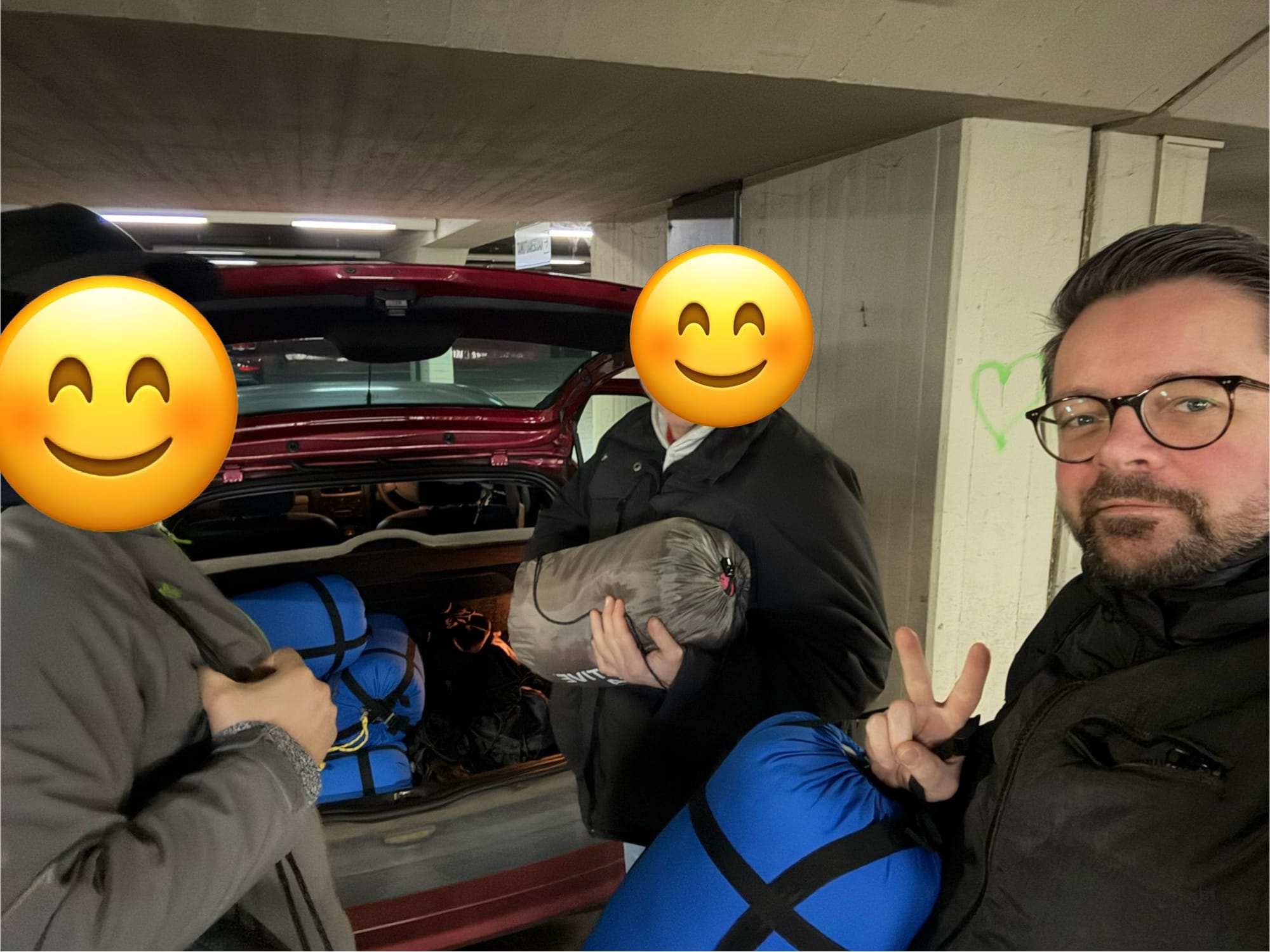 Dankbarkeit, ein kurzer Moment der Freude über diese kleinen Gaben, welche die meisten von uns gewiss nicht vor finanzielle Probleme stellen dürften, sind universell. Die meisten unserer Mitbringsel verteilten wir in der Nähe einer anderen Stadtmission, auch irgendwo in Bahnhofsnähe. Dort waren ohnehin Mitarbeitende damit beschäftigt, ein paar warme Getränke und kleine Speisen aus dem Kofferraum eines Autos heraus zu verteilen. Es überrascht Euch sicher nicht, dass wir unsere restlichen Schlafsäcke und Jutebeutel ziemlich schnell losgeworden sind. Kurz überkam sicher nicht nur mich der Gedanke, gerne mehr verteilt haben zu wollen, als wir unseren Rückweg zum Parkhaus antraten. Diesen schob ich aber schnell beiseite. Die Welt können wir nicht retten. Aber für ein gutes Dutzend Bedürftiger ist dieses Weihnachten vielleicht für einen kurzen Augenblick lang etwas weniger schlimm gewesen. Weil sie gesehen wurden. Weil an sie gedacht wurde.