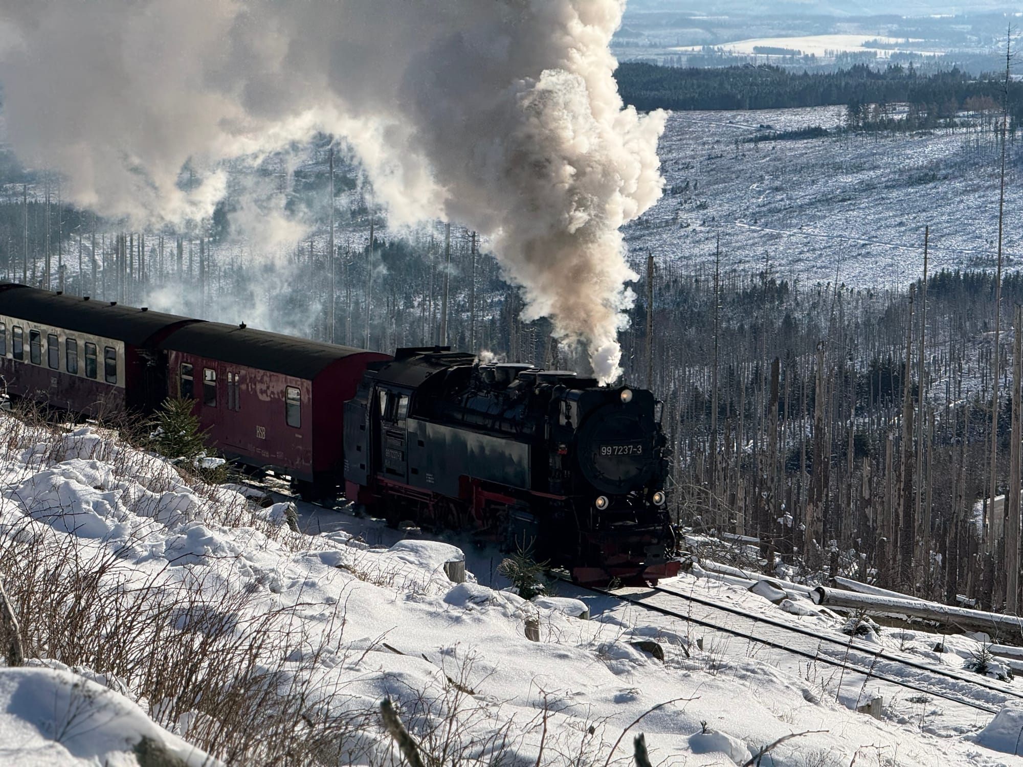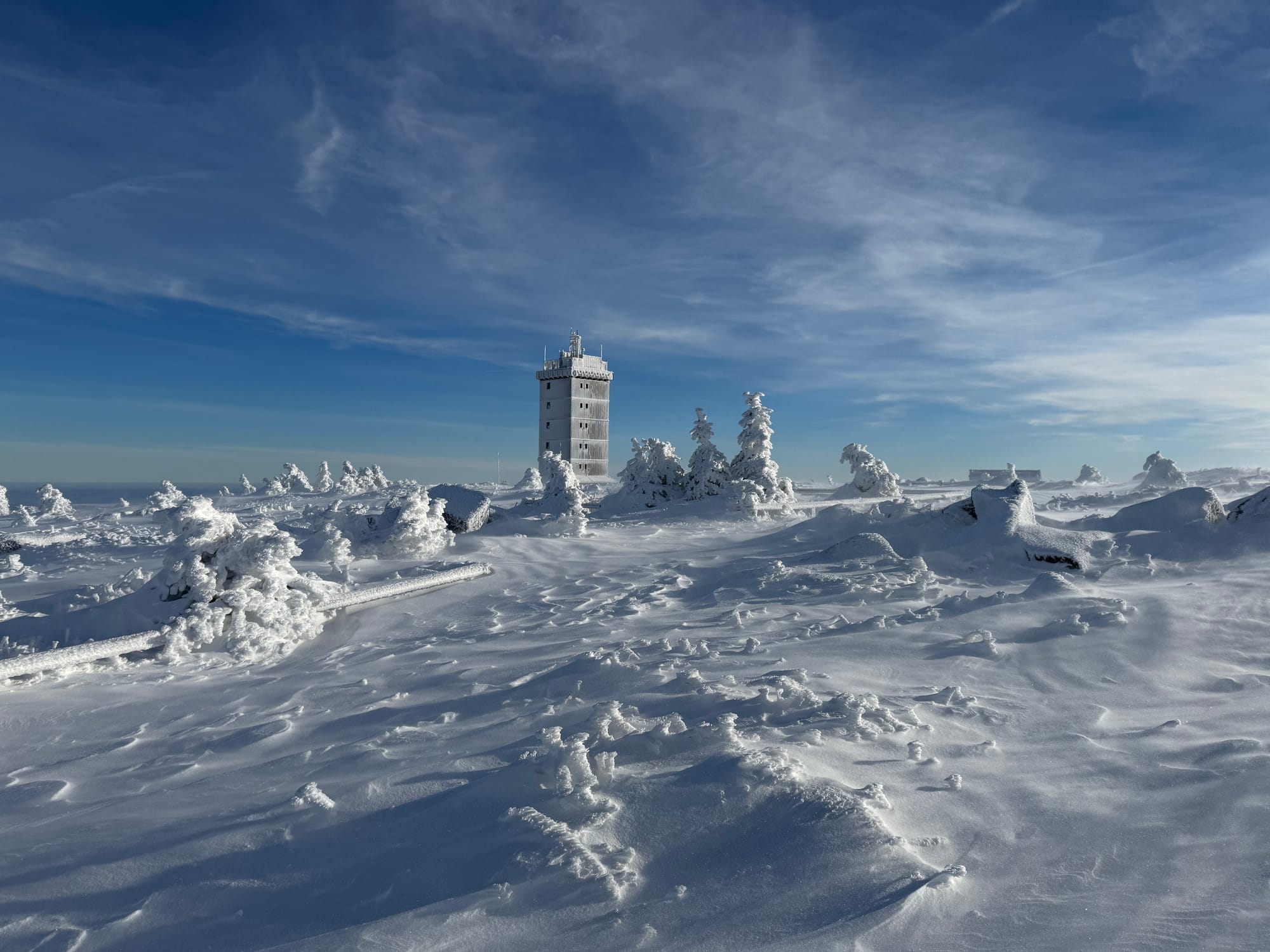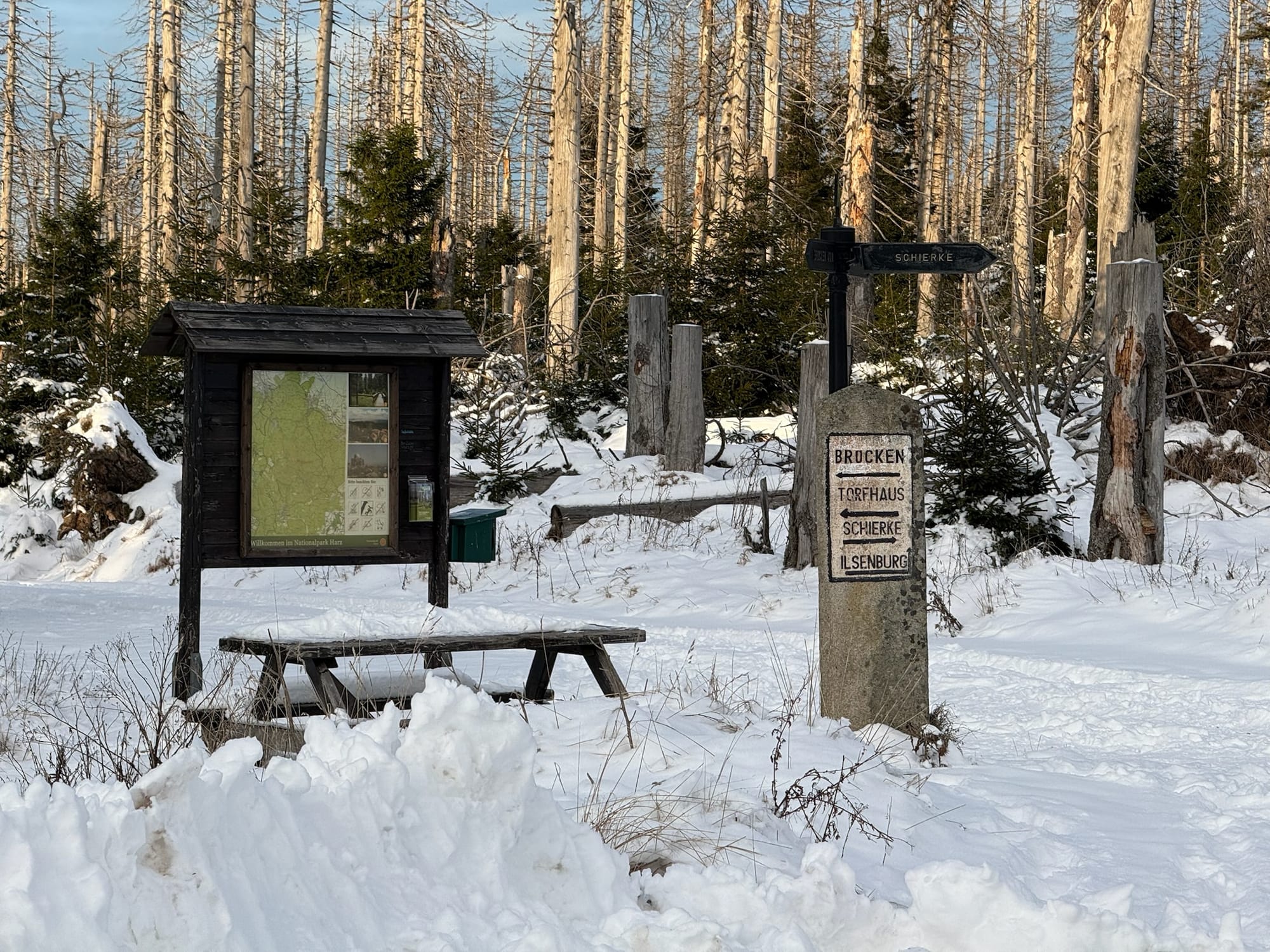 Ein Wort noch zum Winterwunderland: Die hübsch anzuschauende Schneeoptik täuschte nicht darüber hinweg, dass diese Region des Brockens in ziemlich desolatem Zustand ist, was die Bewaldung anbelangt. Das sieht ohne Schnee schon unwirklich aus, mit vom Himmel gefallenem Puderzucker aber noch eine ganze Schippe mehr.