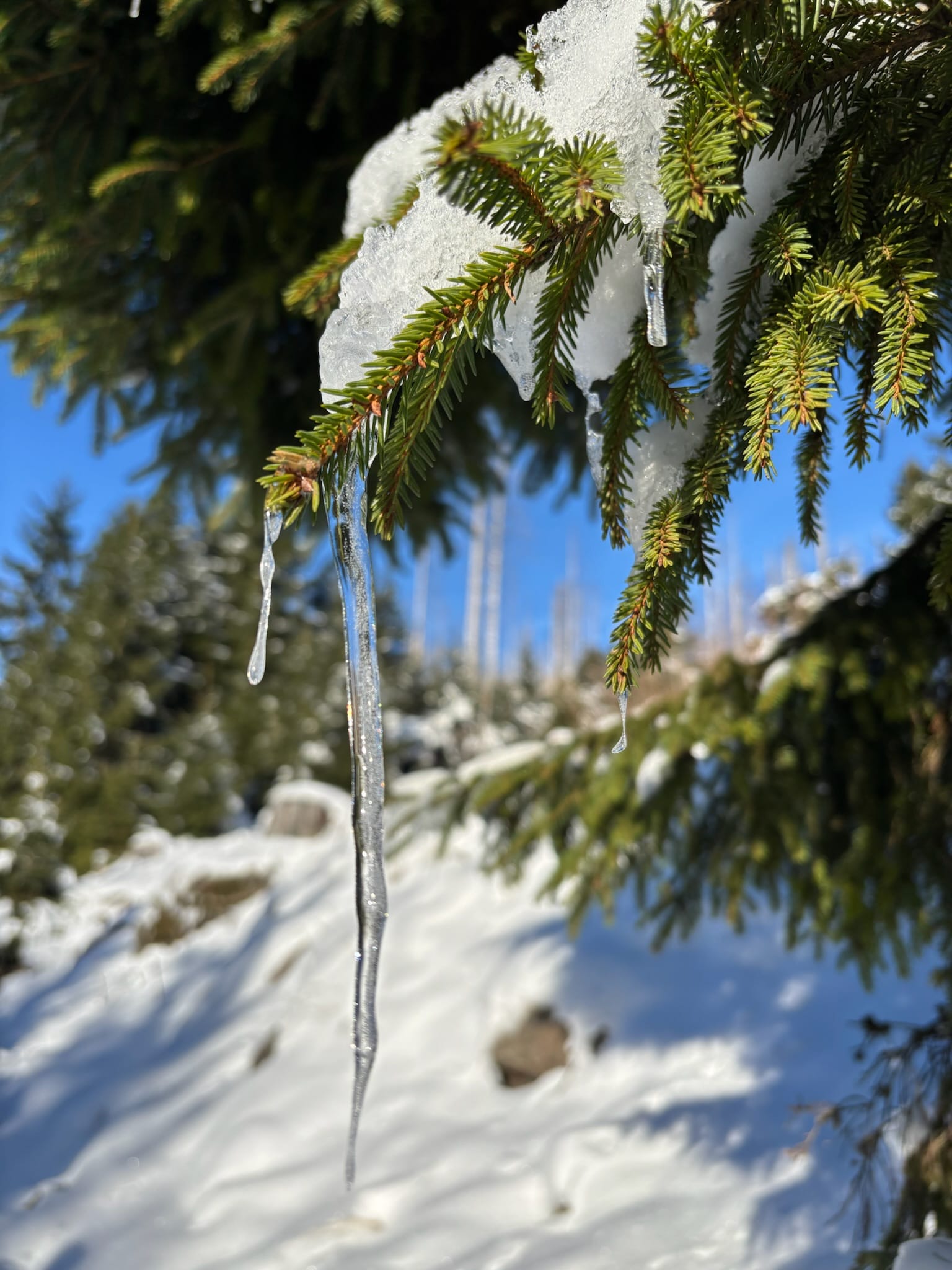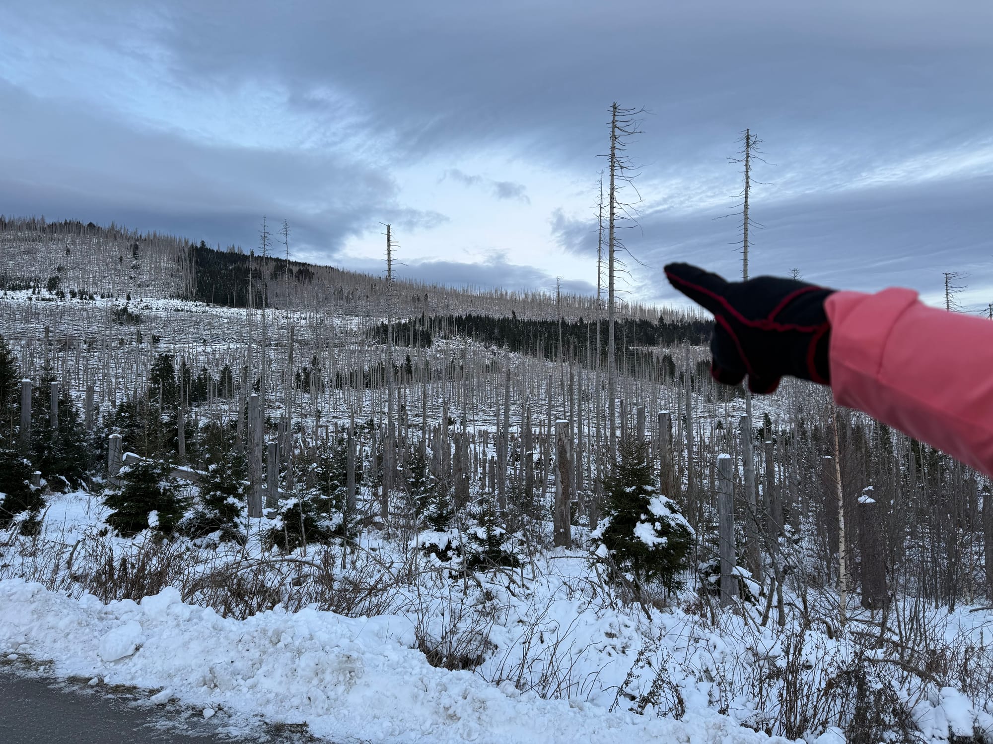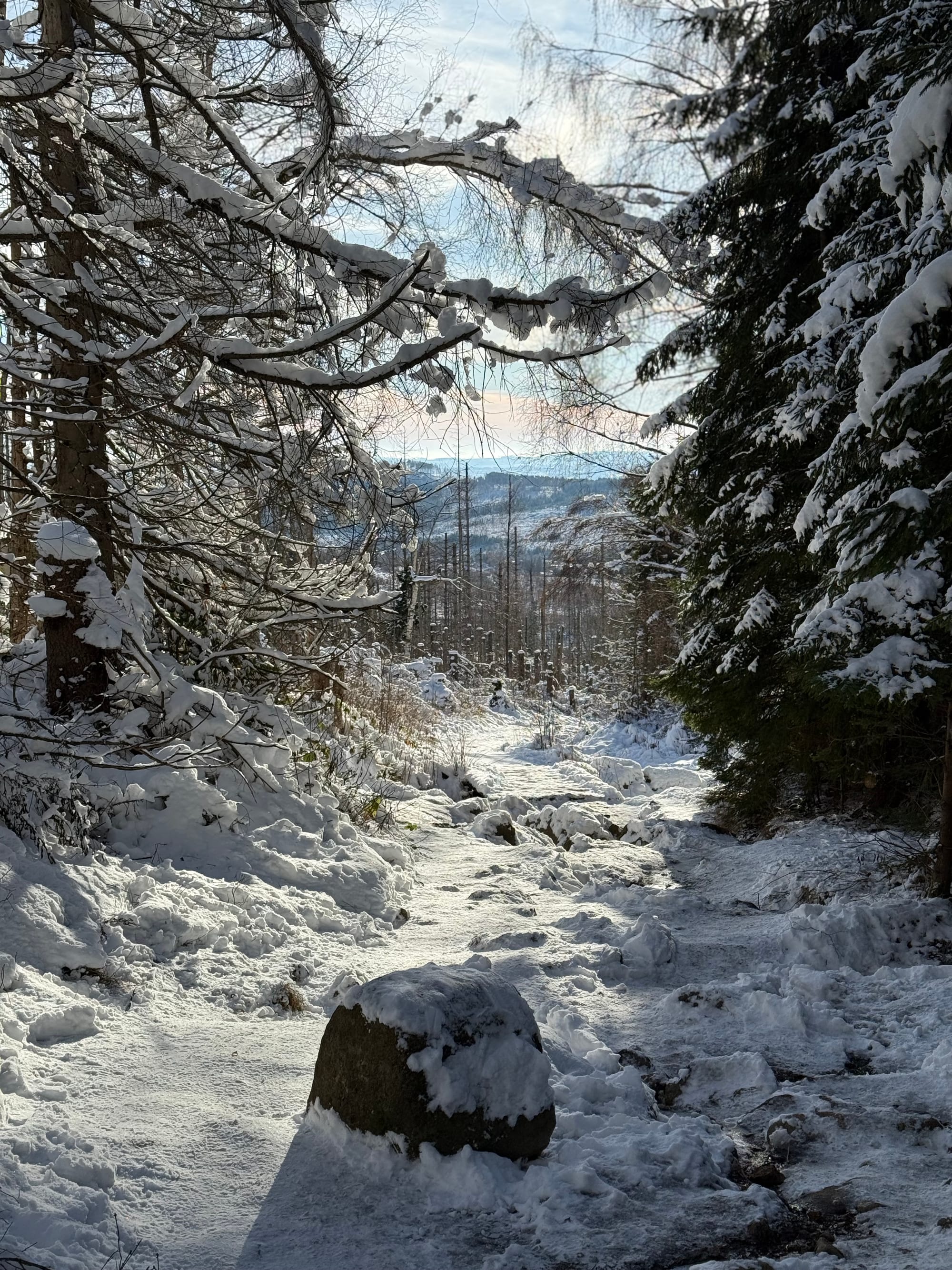 Ein Wort noch zum Winterwunderland: Die hübsch anzuschauende Schneeoptik täuschte nicht darüber hinweg, dass diese Region des Brockens in ziemlich desolatem Zustand ist, was die Bewaldung anbelangt. Das sieht ohne Schnee schon unwirklich aus, mit vom Himmel gefallenem Puderzucker aber noch eine ganze Schippe mehr.